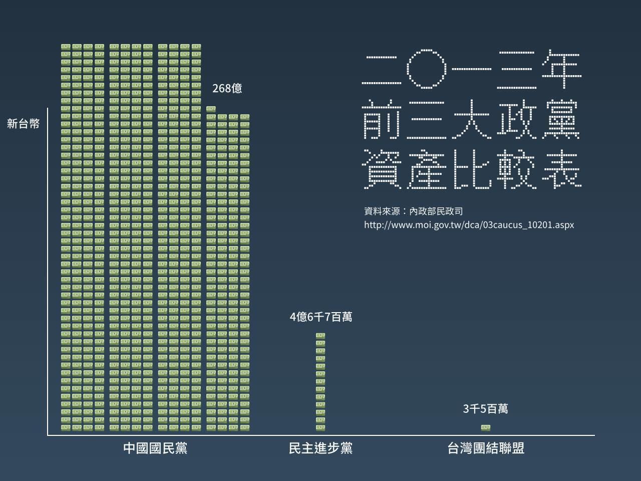 明年的 1 月 16 日就是咱們的總統、立委選舉啦,如果你還沒決定要把政黨票投給哪一個政黨,你可以看看這一份「前三大政黨資產比較表」和「2016 各政黨重視勞工權益評分表」,然後感受一下自己無產階級的身份和這社會上的貧富差距,再來好好地決定你要投給哪一個政黨。