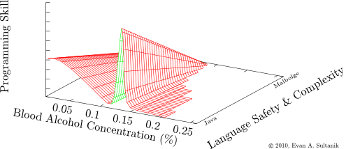 這串討論很認真的想證明 Ballmer Peak 不只是一個笑話而是有所根據的。其中最讓人想要拿出來嘴砲的是 Ballmer Peak 的影響變數除了酒精濃度之外還有程式語言的複雜度。